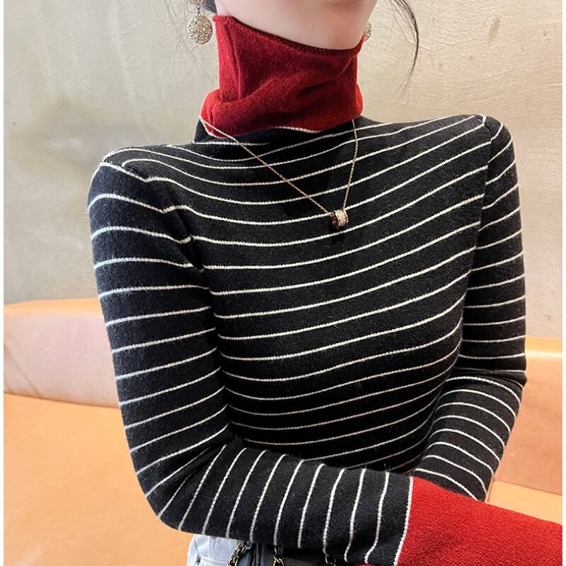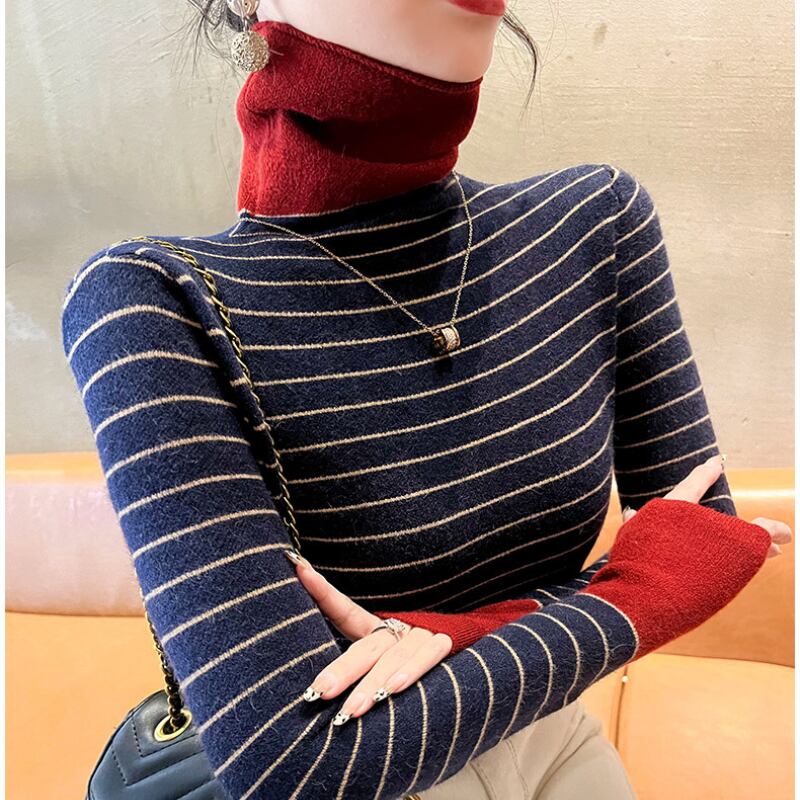 TO005 / ボーダー 長袖 タートルネック ニット / カジュアルながらも上品さを演出。デニムと合わせてカジュアルに、スカートと合わせてフェミニンにと、幅広いスタイルにマッチします。